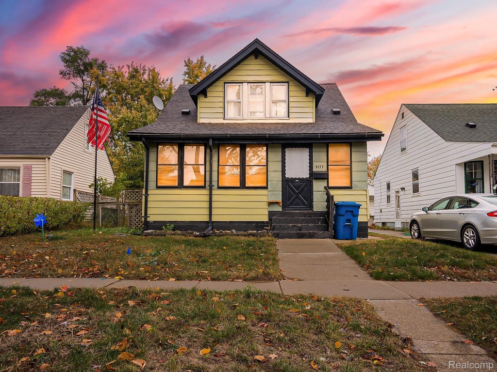 Charming 3-bedroom, 1-bath home situated on a quiet dead-end street, featuring a partially finished basement and an oversized 2-car garage with back access. The home offers beautiful hardwood flooring throughout, a cozy wood-burning fireplace, and an enclosed front porch with a swing for relaxing evenings. Updates include a high-efficiency A/C (2 years old), newer furnace and humidifier (2020), remodeled kitchen and bath, and 200-amp electrical service. The fenced backyard includes a shed and ample parking, adding to the home’s functionality and appeal. This home combines comfort, charm, and convenience. House sold as-is.