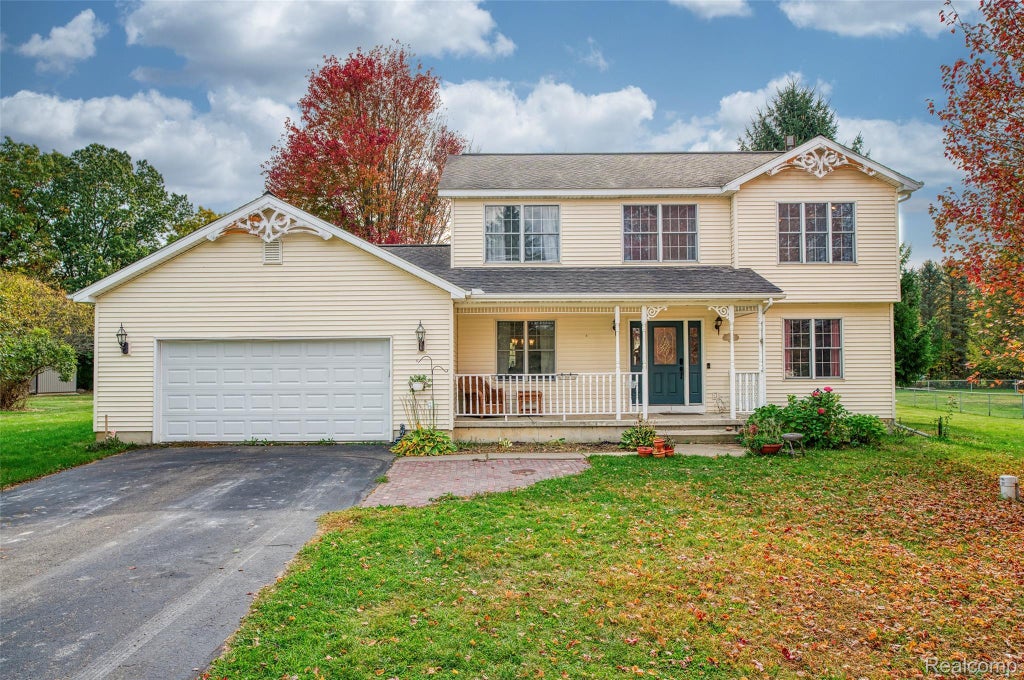 Charming Colonial on 1.2 Acres – Fowlerville Schools! This spacious colonial offers over 2,000 sq. ft. of comfortable living with 3 bedrooms and 2.5 baths. The inviting living room features a cozy gas fireplace, perfect for relaxing with family or guests. Enjoy the convenience of second-floor laundry and a generous primary suite complete with walk-in closets and double vanity sinks. Step outside to a large backyard with a patio and charming gazebo—ideal for entertaining or simply enjoying the outdoors. Additional highlights include a full basement, and 2 car attached garage. While the home does need some updating and flooring, it offers fantastic potential to make it your own.