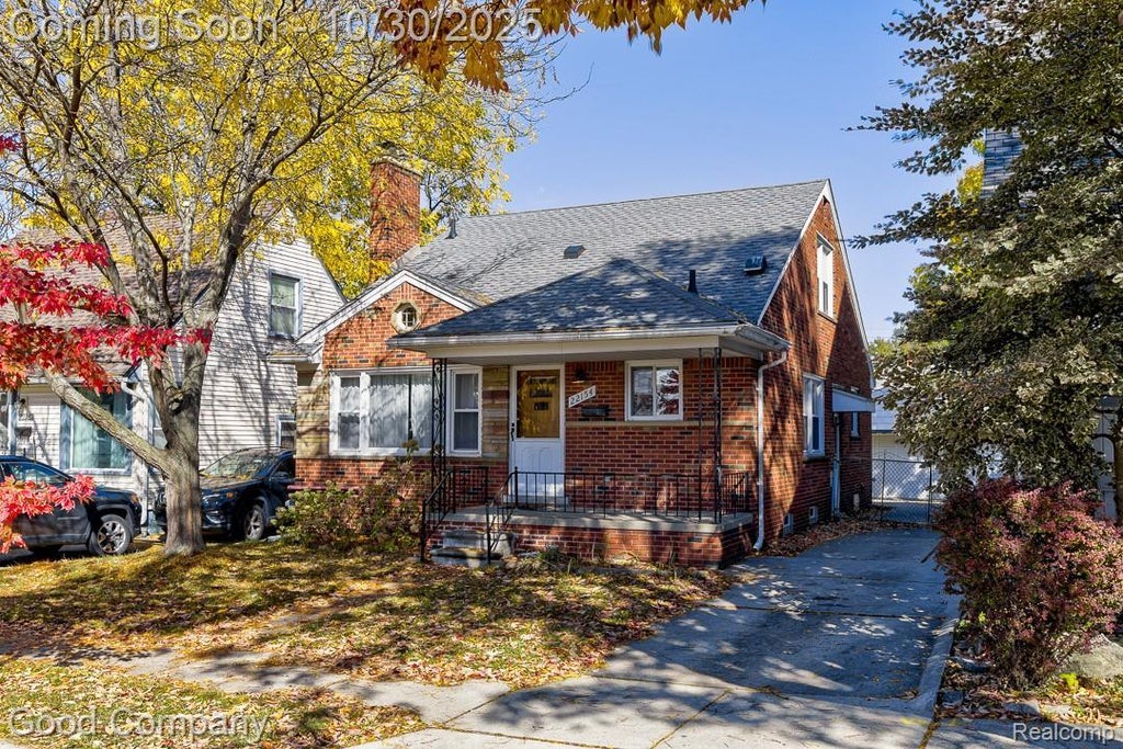 Matterport virtual walkthrough available on Homes. Charming brick bungalow in Dearborn featuring beautiful original wood trim, hardwood floors, and a fully finished basement with its own second living space. Step up to the covered front porch and into a warm and inviting living room with coved ceilings, large front window, and a cozy fireplace. The kitchen offers ample cabinetry and a functional layout that opens to a dining area filled with natural light. Two main floor bedrooms share a clean, vintage-style full bath, while the spacious primary bedroom upstairs provides added privacy. Downstairs, the finished basement includes a full second kitchen, large entertaining area with a faux fireplace, and a second full bathroom—ideal for guests, extended family, or additional living flexibility. Outside, enjoy a fenced backyard with a patio and a detached two-car garage, all set in a well-kept neighborhood with easy access to parks, shopping, and local amenities. Welcome Home!
