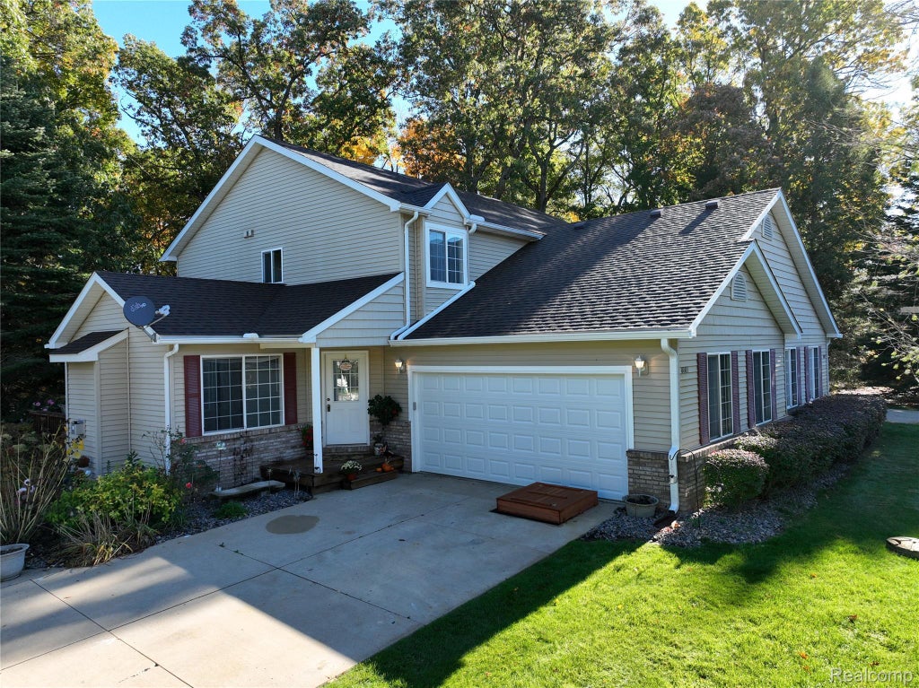 Opportunities to own in this sought-after area are few and far between—don't let this one go! Located on a quiet cul-de-sac and backed up to woods make this extra special. Greeted by hard wood floors in foyer, hallway, powder room and laundry room. Large spacious kitchen offers new flooring, plenty of cabinet storage, and counterspace to whip up gourmet meals while you company can enjoy being a part of with this open concept kitchen to the dining area. Door wall out to deck for relaxing evenings or a BBQ. Living room with natural fireplace and new carpeting. New carpeting is also on the stairway and bedrooms on the second level. Some new features include: new roof 2024, central air 2024, garage door 2024, and clothes dryer 2025. Nature lovers will enjoy the Lakeland trails which run through the beginning of the subdivision with 34 miles of adventure plus the wooded walking trails inside the development. The daylight basement offers so much potential for additional living space with plenty of lighting. Vinyl windows and brick/vinyl siding make this a low maintenance home! Located minutes to US-23, Brighton, Green Oak shopping plaza, restaurants and metro parks. Who could ask for more?