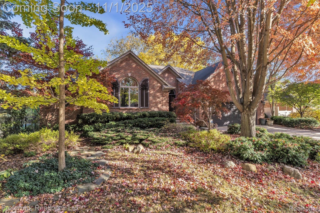 Experience the ease and elegance of single-level living in this beautiful brick ranch. Inside, you'll find rich North American matte-finish hardwood floors and premium Anderson casement windows that fill the space with natural light. The welcoming tiled foyer opens to a spacious great room with vaulted ceilings, an updated gas fireplace, and lovely views. Designed for entertaining, the open-concept layout seamlessly connects the living room, dining area, and kitchen. The fully renovated kitchen (2023) boasts maple cabinetry, granite countertops, stainless steel appliances, and a high-end faucet for a sleek, modern touch. The full unfinished basement offers 9-foot ceilings and is already plumbed for an additional bathroom—ready for your customization. Step outside to a generous stone patio, perfect for hosting gatherings, surrounded by a fenced yard with lush landscaping and serene views; Additional highlights include a two-car attached garage with a built-in workbench and convenient pull-down attic access. Ideally located near parks, golf courses, dining, and more—this home combines comfort, style, and convenience in one exceptional package.