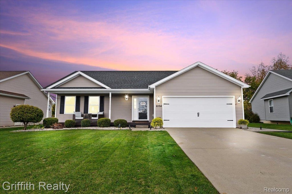 Better than new! This beautifully updated 4-bedroom, 3-bath ranch in the desirable Silver Springs Subdivision offers modern style, comfort, and attention to detail throughout. Built in 2013 and fully refreshed, the home features a 2023 kitchen update with beverage fridge, new custom cabinets, quartz countertops, a contrasting island with seating, subway tile backsplash, and new stainless steel appliances. The open-concept floorplan showcases wide-plank luxury vinyl flooring and plenty of natural light, while the primary suite includes an accent tile wall and solid-surface vanity upgraded in 2023. Custom trim work adds style and charm to every room. The finished basement provides even more living space with an egress bedroom, full bath, office, and a potential fifth non-conforming bedroom. Home is wired for a generator and has a new water softener as of 2022. Outside, enjoy a meticulously maintained and landscaped yard highlighted by a stamped stone patio and private view. Conveniently located near schools, parks, shopping, and dining—this home truly shows pride of ownership and is ready for you to move right in!