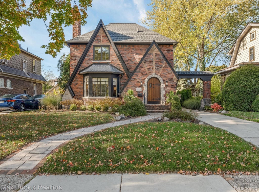 Character, Craftsmanship, and Style abound in this Custom Brick, Stone, and Double Gable Tudor. The Arched Front Door with Limestone Surround opens to a Foyer with Vintage Tiling. Distinctive Details: Plaster Rope Moldings; Ceiling Medallions; Iron Railings; custom Radiator Covers; and Leaded Glass French Doors all give credibility to the Authentic 1930’s Architecture and Design. The Living Room is anchored by a lovely Bay Window and a Fireplace which features a Beautifully Detailed Mantel and Pewabic Tile Hearth. Elegant Hardwood Flooring connects the Living Room to the Dining Room. Leaded Glass French Door opens to Sunroom/Family Room, offering views of the gorgeous, manicured Backyard and Paver Patio. Preserving elements of the Original Kitchen, updates include: Original Arched Leaded Glass Upper Cabinets; Quartz Counters; Bosch Appliances; and newer Lower Cabinets. Charming Breakfast Room is seamlessly linked to working Kitchen and is complete with Corner Cabinetry and Scored Plaster Wainscoting. Main Level also includes a Kitchen Pantry and Powder Room. The Upper Level offers 3 Bedrooms and 2 full renovated Bathrooms. The Primary Suite features huge Walk-in Closet and a Bathroom with marble flooring and glazed subway tile. The stunningly Updated Hall Bathroom features a Soaking Tub, Separate Shower, and Pedestal Sink. The Front Bedroom is spacious and offers 2 Double Closets. The Finished Lower Level, with vintage decorative Fireplace and epoxy flooring, offers additional Living Space. Laundry Room, Mechanical Room, and Storage Rooms complete the Lower-Level amenities. Numerous updates include: Updated Electrial Panel (Generator ready); Roof (2024): House and Garage; most windows are newer/Pella; High Velocity and zoned AC; newer Boiler; Sump Pump with Battery Backup; newer Serene to Street. Exclude: TV (Lower Level), Kitchen Island, Lower Level Refrigerator.