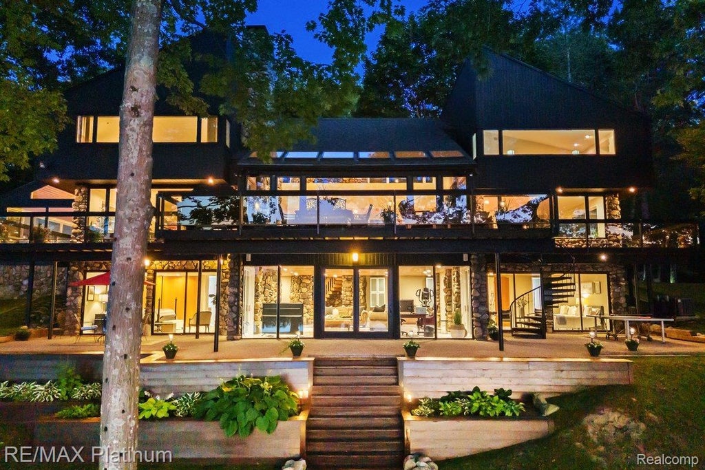 Architectural Masterpiece on Private All-Sports Lake. Welcome to 2095 Brighton Shores Trail, a truly one-of-a-kind estate designed by nationally renowned architect Lou DeRosier. Nestled on over 8 acres with 300 feet of prime frontage on Pardee Lake, this stunning residence blends artistic vision with natural luxury. From the moment you step inside, you’re greeted by sculptural staircases, including a dramatic floating staircase, grand stone fireplaces, and rich natural finishes. Walls of windows bathe the home in sunlight while framing breathtaking lake and wooded views. The custom gourmet kitchen, outfitted with professional-grade stainless steel appliances, is ideal for hosting large gatherings and entertaining in style. The expansive lake level is perfectly suited as an in-law or guest suite, complete with multiple bedrooms and two full baths, including a luxurious walk-in steam shower with multiple shower heads. Enjoy dual staircases for added convenience and accessibility—a serene retreat for overnight guests or extended family. Outdoor living reaches a new level with a cedar-clad boathouse featuring built-in media, creating the ultimate lakeside lounge for fishing, relaxation, or summer movie nights. A separate carriage house outbuilding, already plumbed for a full bath, offers flexible options for a private office, guest quarters, or creative studio. And for an unforgettable experience—watch the infamous Howell Balloon Fest from your boat or your deck, with front-row views over Pardee Lake. Additional highlights include: • Elevator-ready design for future accessibility. • Expansive gathering spaces inside and out. • Potential as a private residence, rehab retreat, or executive getaway. Whether you’re hosting a celebration or seeking solitude on the water, this home offers a rare opportunity to own an architectural jewel in a peaceful, natural setting.