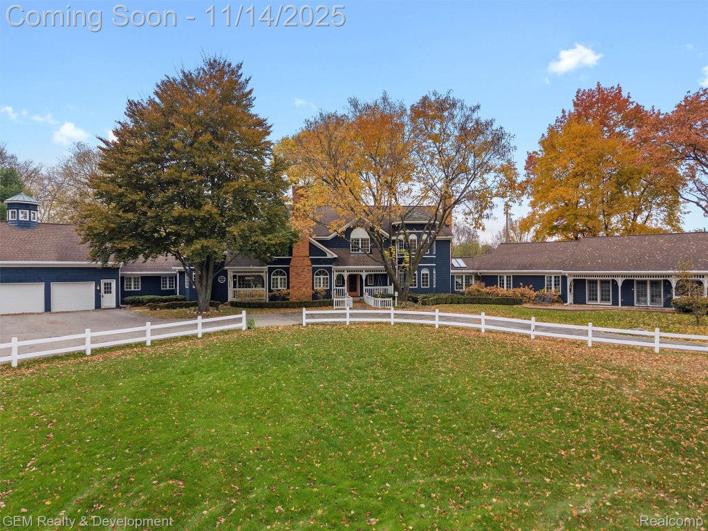 In the Spirit of a Country Estate, this spectacular Bloomfield Hills executive retreat is perfectly situated on a gorgeous, private 2.04-acre parcel overlooking Stonycroft Hills Country Club. Accessed by a winding white picket fence, the main and upper levels feature 6,785 square feet of living space showcasing newer, site-finished oak hardwood flooring throughout, abundant windows, and generous rooms offering exceptional flow. Some highlights include three fireplaces, character ceilings, and abundant natural light. The gourmet eat-in kitchen is a chef's dream with granite countertops, large center island, stainless steel appliances, and butler's pantry with prep area, all adjacent to the impressive formal dining room. The expansive great room captivates with floor-to-ceiling windows and stunning stone fireplace, while the library provides ideal work-from-home space with additional fireplace and vaulted ceiling. The bonus, second great room is an exceptional space complete with mini kitchen and expansive island, ideal for family gatherings, featuring a full bath with direct access to private yard and convenient to the upper level in-law suite with its own private full bath.