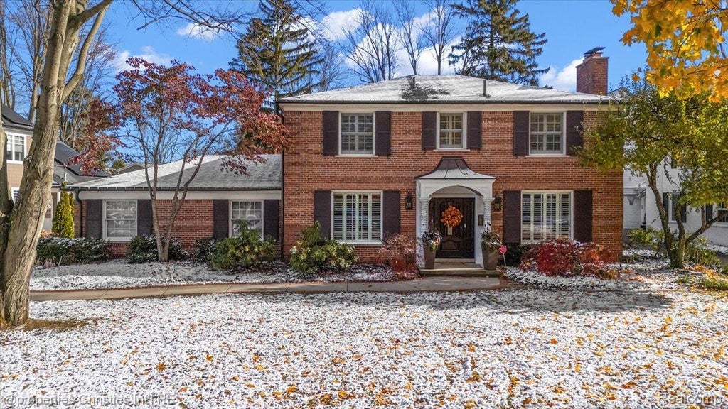 Beautiful Center Entrance Colonial in Quarton Lake Estates — situated on one of Birmingham’s most coveted streets. This stunning home offers 4 bedrooms, 2.5 baths, and nearly 2,900 square feet of living space with numerous updates throughout. The main level features gleaming hardwood floors and a formal living room with a grand gas fireplace that opens to the formal dining room—perfect for entertaining. The elegant gourmet kitchen showcases a spacious center island with a gas cooktop, granite countertops, stainless steel appliances, custom cabinetry, subway tile backsplash, and a large doorwall leading to a serene backyard oasis. The kitchen opens to a comfortable family room with a gas fireplace, recessed lighting, surround sound, and rich hardwood floors—an ideal space to relax and unwind. A wood-paneled office/den and a stylishly updated powder room complete the main level. Upstairs, you’ll find four generous bedrooms, including the owner’s suite featuring a beautifully updated bathroom with a Euro glass spa shower and modern vanity. An additional updated full bath with a tub serves the remaining bedrooms. The lower level offers a large finished area with recessed lighting and ample room for entertaining, plus an unfinished section providing excellent storage, cedar closet and laundry space. Outside, enjoy a charming brick paver patio and a beautifully landscaped, private backyard. Additional highlights include a two-car attached garage with epoxy floors, new HVAC systems (2022), updated electrical (2022), new plantation shutters (2023), and all new landscaping lights around the entire house (2023). This home perfectly combines timeless charm with modern updates—an absolute must-see!