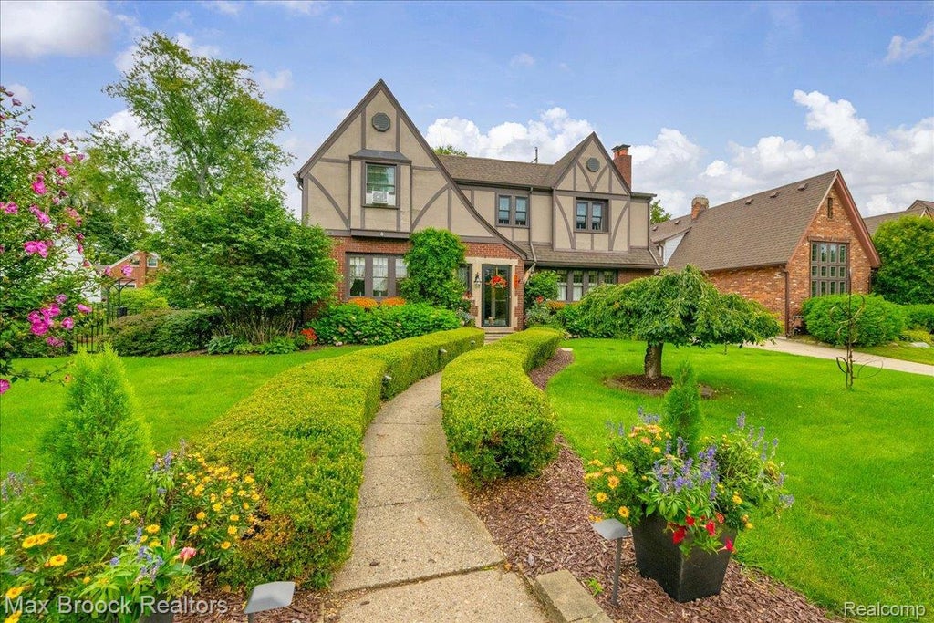 A Rare Find in Historic Seminole Hills! This timeless brick Tudor is a true gem, showcasing the character & craftsmanship of a bygone era, thoughtfully blended with today’s modern amenities. Nestled on a park-like lot in the highly sought-after Historic Seminole Hills, the home is surrounded by stunning gardens, custom walkways, mature trees, perennials, and a fully fenced yard—offering a private oasis. Step inside and be instantly captivated by the architectural elegance and original details throughout. Authentic features include arched doorways, crown molding, plaster walls, beautiful hardwood floors, and original solid wood doors. The inviting living room features a natural fireplace with a custom mantel and handcrafted Pewabic tile, surrounded by windows that flood the space with natural light. Adjacent, the cozy library with built-in bookcases and a dedicated office area offers views of the serene backyard. The formal dining room flows seamlessly into an updated kitchen complete w/granite countertops, SS appliances, and a spacious breakfast room. The sun-drenched family room opens to a multi-level deck and an oversized side lot—perfect for indoor/outdoor entertaining. Upstairs, the spacious primary suite includes a walk-in closet and dual-entry bath. A private guest ensuite and two additional bedrooms complete the second floor. The partially finished basement offers even more living space with a bonus room, bar area, and ample storage, along with a large, separate laundry room. Additional highlights include a centrally located grand staircase, first-floor powder room, a two-car detached garage with an attached shed, and a newer roof.