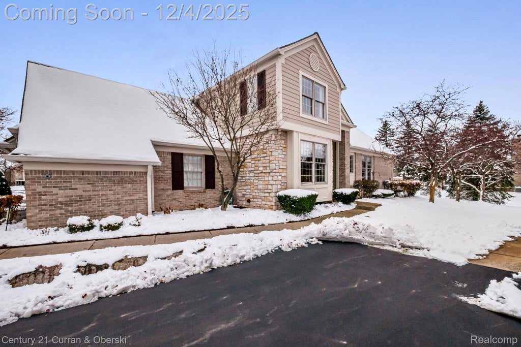 Pristine Cape Cod end unit, largest model in the complex with three bedrooms 3 1/2 baths. Freshly painted agreeable gray throughout, new plush carpet in 2016, central vac, 42 inch white bay cabinets and kitchen with stainless steel appliances and granite and vaulted ceilings. New heat exchanger in 2019 and motor in 2024 in furnace, 9 foot ceilings on 1st floor with vaulted ceiling in great room, security system, 2 car garage that fits a Ford F-150. Spacious study off foyer, first floor primary bedroom, first floor laundry, speakers in great room, study, and primary bedroom. New dimensional roof in 2022, all three roof assessments have been paid, huge deck recently refinished, clubhouse and pool in complex.