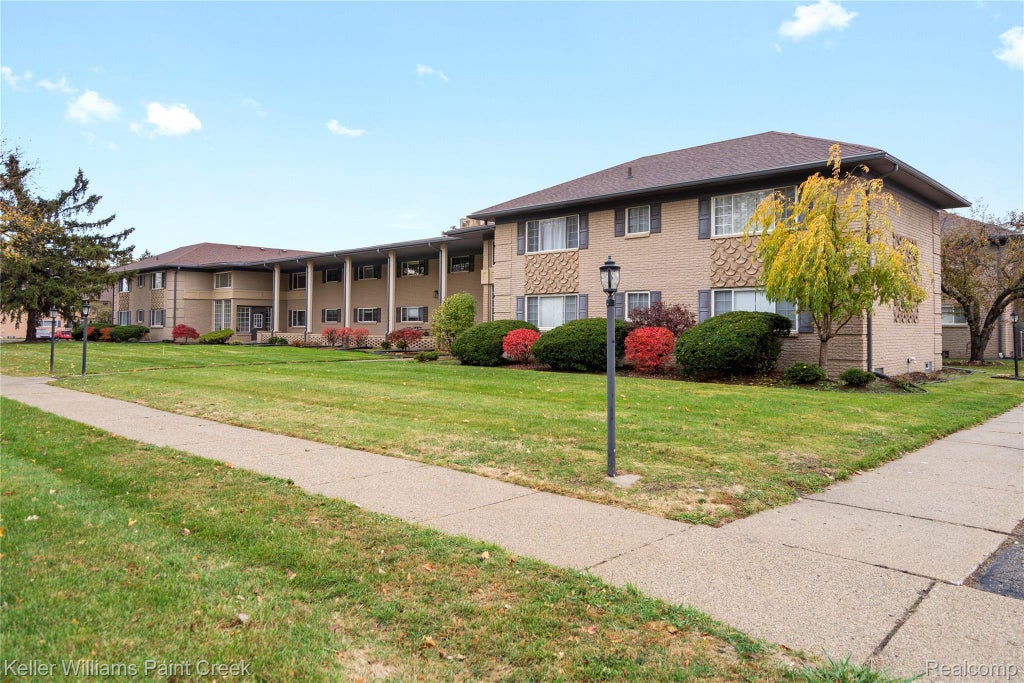 Stunning newly renovated (2024) first-floor ranch condo with the ultimate location. Move-in ready with easy ground-level access, perfect for everyday convenience. Features neutral décor, wood floors (new in bedrooms), and two full bathrooms with beautiful marble and tile finishes. Kitchen offers cherry cabinets, granite countertops, and premium Bosch appliances. Spacious living room, dining area, and large foyer closet with extensive moldings throughout. Primary suite includes private bath, walk-in closet, dressing area, and stackable washer/dryer. Includes basement storage, covered carport, and recreation room. Seconds from Oakland University, The Village of Rochester Hills, downtown, and shopping.