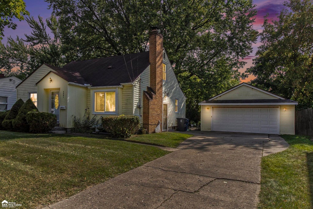 Check out this adorable move-in ready cape cod! Featuring 3 beds, 1.5 baths, 2 bedrooms on the main floor and spacious master upstairs. With almost 1200 sqft of living space, cozy fire-lit living room with lots of natural light, updated windows throughout, an oversized detached garage with new garage door, full finished basement with a bar and drywalled and plumbed for 1/2 bath. This home is on a quiet street in a great neighborhood, close to all amenities!