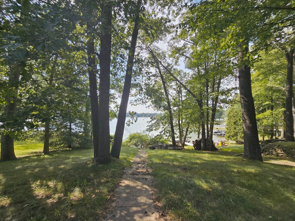 Diamond in the rough with 89' of water frontage on all sport Lake LeAnn. Looking for uniqueness? Come and discover a rare opportunity to own a one-of-a-kind octagon home home built in 1975, nestled on 89' of water frontage. This architecturally unique home faces west and offers stunning sunsets views every night. Situated high above the water and on a walk-out basement, this 2,606sf home offers 2 owner suites on the main level, 2 newly built attached garages and a bonus surprising feature -a swimming pool in the basement! With its solid structure and new roof, this home is full of potential! While it does need some TLC throughout, it presents a fantastic opportunity to make it your own. With imagination and updates, it could easily become a stunning showpiece.Come view today and reimagine this hidden gem on all sport Lake LeAnn.
