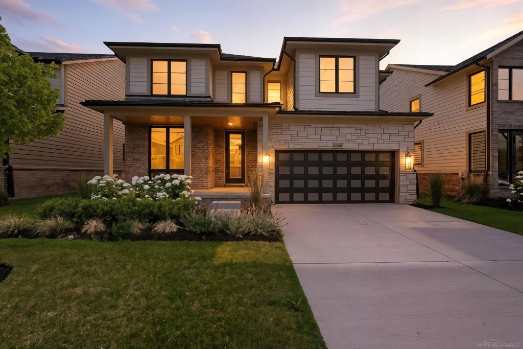 This beautifully crafted new construction home offers a perfect balance of style, comfort, and location-just a short walk from Eisenhower High School. With its clean architectural lines and natural light-filled design, the home welcomes you with a striking entry and a warm, modern aesthetic. Inside, a grand two-story foyer leads to a private study filled with natural light and refined finishes. The open-concept layout showcases wide-plank hardwood flooring and a seamless flow between living spaces. The chef's kitchen features custom cabinetry, stone countertops, a designer backsplash, professional hood, and a spacious walk-in pantry. An inviting dining area and expansive living room with fireplace overlook a private backyard and covered outdoor terrace. Upstairs, the primary suite is a peaceful retreat complete with a spa-style bathroom, dual vanities, soaking tub, oversized shower, and generous walk-in closet. A second-floor laundry room adds convenience and style. Finishes throughout include designer lighting, premium fixtures, custom millwork, and a fully landscaped yard with irrigation-creating a move-in-ready home of exceptional quality and timeless appeal.