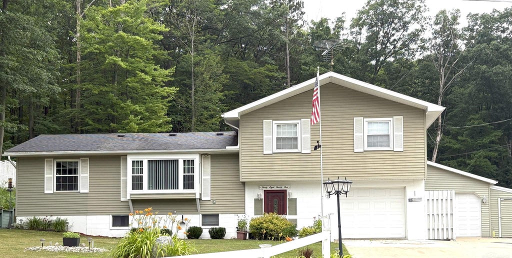 MOTIVATED SELLER: $1,500 concessions to use towards your closing costs & PRICE REDUCTION!!! Open Concept MINUTES from town! Drink your coffee while watching deer in the morning! PURE BLISS! Beautiful, well kept FIVE bedroom home w/2nd living quarters in lower level. Lower level: 4th & 5th bedrooms (or 4th bedroom + Home Office), 2nd kitchen inc stove, & family rm. Fabulous open & airy feel! Crown moldings on main floor enhance the beauty! Updated main kitchen w/gas fireplace in dining rm. Upstairs offers 3 bedrooms w/large updated full bath. 3/4 bath/laundry rm between the two levels. Cordless window treatments stay. Large deck w/vinyl railing & retractable awning, attached 1 car garage, 2 storage sheds, 24'x36' heated detached 2nd garage (10' ceilings) w/220 electrical (currently using as workshop & can easily be turned back into garage for parking). "Lean-to" off 2nd garage for extra storage, DOUBLE LOT for room to roam & enclosed raised garden! Fenced yard. 1.6 Miles to Wilson State Park. 1 Mile to Fairgrounds. 20 Lakes in 20 Minutes! State land accessible by ATV trails at end of street is part of 100 mile trail system. BUDD LAKE 1 mile away has yearly Musky fishing competitions. PURE MICHIGAN!!!