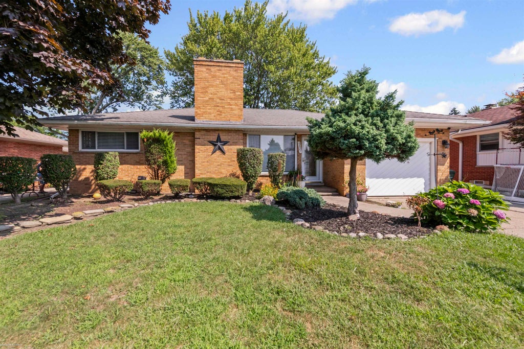 Welcome home to this beautiful sprawling ranch in an ideal location in the heart of the Shores. Upon seeing this home you will first notice the lovely curb appeal of the landscape. A large open floor plan throughout, lots of light and many unique architectural features, natural fireplace in the living room, window treatments stay, neutral paint throughout, two large full bathrooms and 1 half bath in basement, hardwood floors in a few rooms, newer carpet, spacious family room with vaulted ceiling and windows, updated door-wall to patio, custom kitchen will include all appliances such as a high-end gas range and vent, lots of storage, updated canned lighting & fixtures, master bedroom with high ceilings and closets, basement has a lot of potential for extra living space and a bar area, separate laundry room, large shaded yard & patio for bbq's and gatherings. Outbuilding can be used as a studio or wood shop.