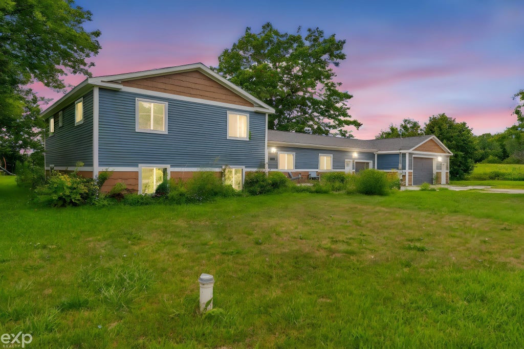 Nestled just outside city limits on a paved road, this beautifully maintained home offers over 2,900 square feet of thoughtfully designed living space. Perfectly situated between two thriving communities, all amenities are within a short, ten-minute drive. The open-concept main floor showcases plank flooring, soaring 9-foot walls, vaulted ceilings, and a welcoming foyer with oak hardwood floors, stair treads, and iron-accented railings. The large living and dining areas seamlessly connect to a chef's kitchen, outfitted with 9-foot dark maple cabinets, granite countertops, crown molding, a stone accent wall, offset farmhouse sink, walk-in pantry, and deluxe built-in appliances, including a 48-inch Jenn Air refrigerator, wall oven, microwave, dishwasher, and Electrolux gas range with dual ovens-ideal for gatherings and culinary creativity. Upstairs you'll find a master suite with plush carpeting, a luxurious ensuite bath featuring dual vanities, and a generous 5x12 walk-in closet. Two additional upper bedrooms, a full bath, and an abundance of storage offer ample room for family or guests. The lower level features a spacious 14x35 family room with plush carpeting, a fourth bedroom, and a comprehensive utility area providing easy access to modern systems such as forced air furnace/AC, well pump, water softener, hot water heater, and 150-amp sub-panel. The dedicated laundry room is outfitted with oak cabinetry, washer, dryer, and a solid surface countertop with an undermount sink-meeting all your cleaning and storage needs with ease. Every bathroom includes porcelain tile flooring and decorative tile trim for a clean, timeless look. The attached 3-car garage includes an insulated 30x40 workshop with 10-foot ceilings, a workbench, plumbed airlines, 120/220V electrical, built-in storage, and a dedicated single bay. Outside, enjoy lush landscaping, a 10x25 entry porch, a spacious driveway, a 40x16 crushed concrete pad for RV or trailer parking, and a 22x40 concrete patio with a built-in fire pit-perfect for summer eveni