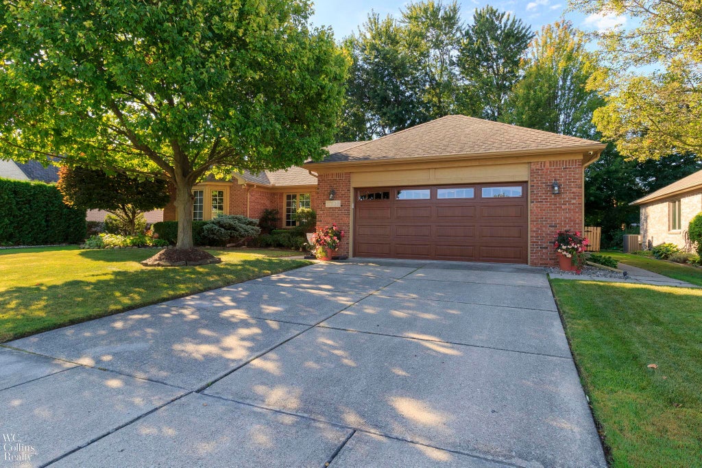 Exquisite 3 bedroom, 3.5 bath ranch with the ease of single-level living. Welcoming foyer opens to the spacious great room featuring vaulted ceilings and a gas fireplace with new surround. Gourmet kitchen offers beautifully finished real hardwood floors, classic white cabinetry and granite countertops and tile backsplash, with appliances included and plenty of space for cooking and gathering with island and large eating area overlooking beautiful private yard. The primary suite includes a private bath, while the finished basement provides a large recreation room, bar, entertaining area, workout space, full bath, and storage. Enjoy the backyard oasis with patio (table included!) built in gas grill and mature shade trees and low voltage exterior landscape lighting in front and rear yard for night time entertaining. Recent updates include furnace, central air, garage door, doorwall with built in blinds, and leaf guard gutters. This home is truly move in ready! Please exclude security system and refrigerator in basement.