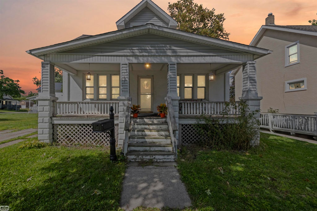 Welcome to this charming and well-maintained 3-bedroom, 1-bath home in Port Huron. This inviting property features a large front porch, perfect for relaxing, entertaining, or enjoying your morning coffee. Inside, you'll find a bright and comfortable living area, a functional kitchen with all appliances included, and a basement that provides valuable storage space and flexibility. The home has been thoughtfully cared for and offers a warm, move-in ready atmosphere. Ideally situated close to downtown, restaurants, and shopping, it provides both convenience and a sense of community. For added peace of mind, the seller is including a one-year home warranty. Don't miss the opportunity to own a home that blends comfort, charm, and location in one appealing package. Excluded from sale: Curtains, fireplace, curtain rods, candle lanterns on wall.