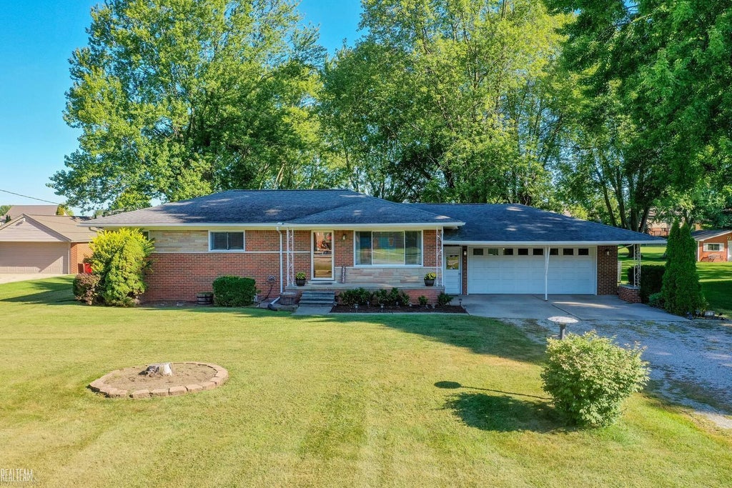 Inviting ranch in Macomb on just under an acre lot! This home features a spacious, sun-filled living room and an updated kitchen with granite countertops, ample cabinet space, and a cozy dining nook. The full bathroom was completely renovated in January 2024. Three nicely sized bedrooms and a finished basement provide plenty of living space, including a convenient laundry and storage area. Additional highlights include an attached 2-car garage, new windows and custom blinds throughout (July 2025), sump pump replaced (2022), furnace (2021), water heater (2018), and a massive backyard with a brick fire pit-perfect for entertaining or relaxing outdoors.