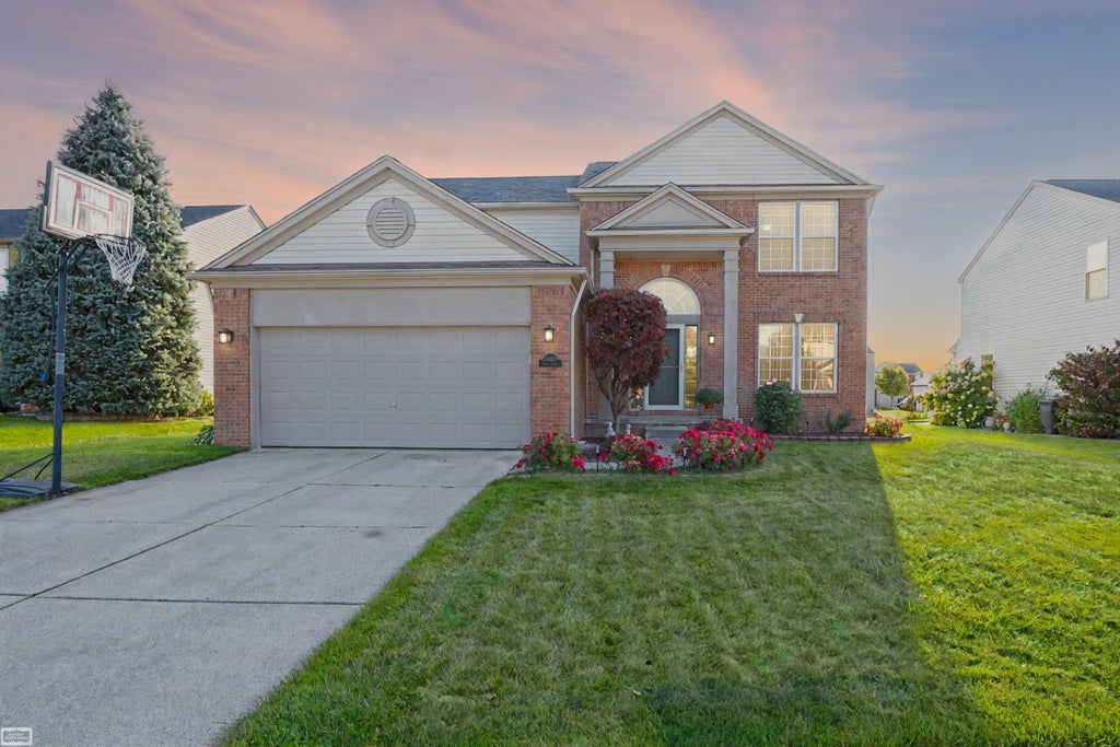 Beautiful 4-bedroom colonial located in a quiet Macomb Township cul-de-sac on an oversized lot. This one-owner, turnkey home offers a spacious primary suite with a massive bedroom, attached bath with soaking tub and stand up shower, and large walk-in closet, new flooring in two of the bedrooms and a grand entry way with vaulted ceilings! The Great room features a cozy fireplace, perfect for relaxing or entertaining. The kitchen showcases unique cabinetry, plenty of storage and an island! Enjoy a finished basement with half bath, 2-car attached garage, and smart home upgrades including an Ecobee thermostat (Alexa-enabled), Ring doorbell, and Wi-Fi enabled garage opener (2023). Major updates include a new roof (May 2021) with transferable 50-year warranty and a new water heater (Mar 2023). Step outside to a stunning brick paver patio and a large backyard. Don't wait on this rare find in a prime location!