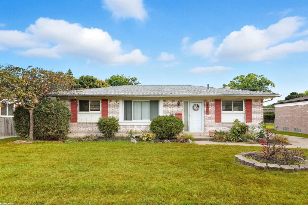 Estate Sale being sold AS-IS. Solid 3-bedroom brick ranch located in the highly sought-after Utica Schools! Step into the spacious living room filled with natural light and accented by timeless crown molding. The open concept kitchen features hardwood floors, ample cabinet space, and all appliances included. Gather in the cozy family room this winter and enjoy the warmth of the gas fireplace. The partially finished basement offers a convenient half bath and plenty of potential for additional living space. Outdoors, enjoy a large fenced-in backyard, perfect for entertaining or relaxing. Recent updates provide peace of mind, including a newer roof on both the house and garage (with warranty), newer sump pump, and water heater.