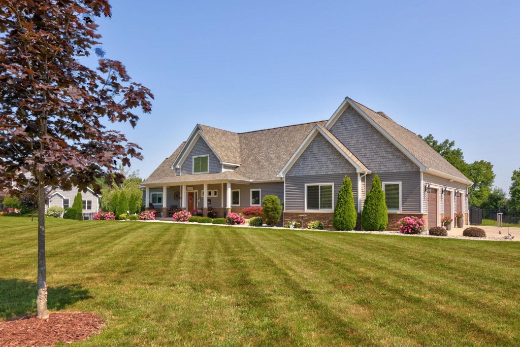 Tucked away on a rare 2+ acre city lot, this beautifully maintained and decorated 2-story home offers 3,750 square feet of comfortable elegance, perfect for both everyday living and entertaining. Step into the impressive great room with soaring cathedral ceilings, a cozy gas fireplace, and open sightlines to the dining area and functional kitchen-complete with granite countertops, a large island with seating, and ample cabinetry. The spacious covered deck, accessed through sliding glass doors, features Trex decking and built-in outdoor speakers for seamless indoor-outdoor living, creating the ideal setting for gatherings or quiet evenings. The main floor primary ensuite offers a peaceful retreat with a large walk-in closet, a full bath including a soaking tub, separate water closet, and plenty of natural light. Upstairs, you'll find two generously sized bedrooms sharing a full bathroom, along with an expansive bonus room offering endless possibilities-from playroom to home office or additional guest space. The finished walkout lower level is designed for fun and function with durable epoxy flooring, a workout room, full bathroom, fourth bedroom, and abundant storage. It opens to a second covered patio that flows into a large, fenced backyard with paver walkway to a cozy firepit-perfect for Michigan evenings. Practical features include 3-zone heating and cooling (one furnace and AC unit per floor), an oversized 3-car garage, mudroom entry with half bath and laundry, and thoughtful details like buried downspouts, 2x6 construction, and a full security camera system. This home blends privacy, space, and city convenience within proximity of Frankenmuth's charm. A true gem in an unbeatable setting.