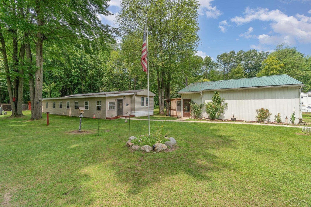 Peaceful, Private, and Packed with Extras! Welcome to this beautifully updated 3-bedroom, 2-bath manufactured home with a 12x70 addition, set on a serene 1-acre lot surrounded by mature trees and nature. Inside, nearly everything has been redone-including insulation, drywall, flooring, cabinetry, and countertops. The only original feature left is the garden tub in the master bath! Stay cozy year-round with both propane and wood heat , and enjoy the comfort of a built-in 18,000 BTU AC unit and a newer furnace (installed 5 years ago). The home also features a spacious eat-in kitchen, large living and dining areas, and a main-floor laundry. Step outside to enjoy a private oasis complete with a swimming pool, chicken coop, hunting blind, and multiple sheds-including a 12x20 shed with loft (6 years old). The 28x32 finished pole barn with 12x32 addition is a true bonus space featuring a bar, workout room, tanning bed, bathroom with running water, wood stove, and its own 100 amp service. Additional highlights include: Private well (8 years old) and septic (pumped 2 years ago) Carport used for wood storage Appliances, firewood (enough for next winter), workout equipment, tanning bed, and shed all included Skirting with crawlspace access Whether you're entertaining at the bar, relaxing by the pool, or enjoying your own backyard woods, this property has something for everyone. Don't miss out-schedule your private tour today!
