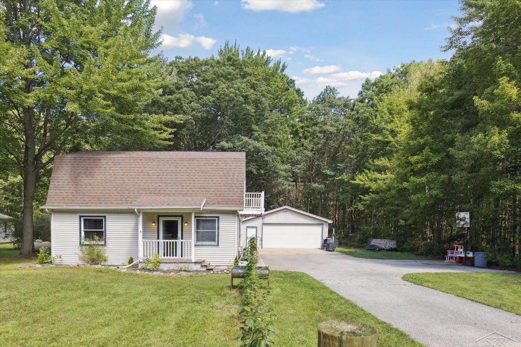 Tucked away from the road and surrounded by trees, this charming home offers over an acre of peaceful living. Outdoor living is easy with a large entry and French doors leading to a spacious back deck, perfect for soaking in the natural setting and serene quietness of the property. Inside, the open-concept main level shines with new flooring throughout and fresh paint, making this a truly move-in ready home. A convenient laundry room and additional storage space-ideal for a large pantry-add to the home's functionality. Upstairs, you'll find the second and third bedrooms along with a versatile flex room featuring its own walkout balcony. The insulated garage, complete with 220-amp electric, provides plenty of room for vehicles, hobbies, or a workshop. All this comes with the ease of country living, while still being just 6 miles from Shepherd Schools and 7 miles from Mt. Pleasant.