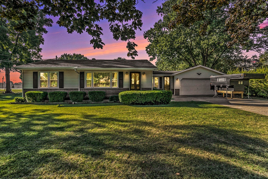 Updated Kitchen, new HVAC & Hardwood Floors in Prime Location! Move-in ready ranch with major updates and prime location! This 3-bedroom home boasts an updated kitchen, original hardwood floors, plenty of storage space, and an open layout that flows beautifully. Enjoy the large fenced in backyard perfect for entertaining in the patio area or playing in the yard with kids. The garage and basement both have plenty of storage space. Garage include accessible rafter storage, built in shelves, and work bench. Basement area is great for entertaining with a second operable kitchen, included pool/ping pong table, and chalkboard wall for keeping score during game nights. Recent improvements include: new HVAC (2024), sump pump (2022), and garage door. Township taxes with farm field views but the convenience of just minutes to town. Only 3 minutes to Walmart/Meijer/restaurants and ~10 minutes to local parks/lakes/hiking trails . Call today for a personal showing.