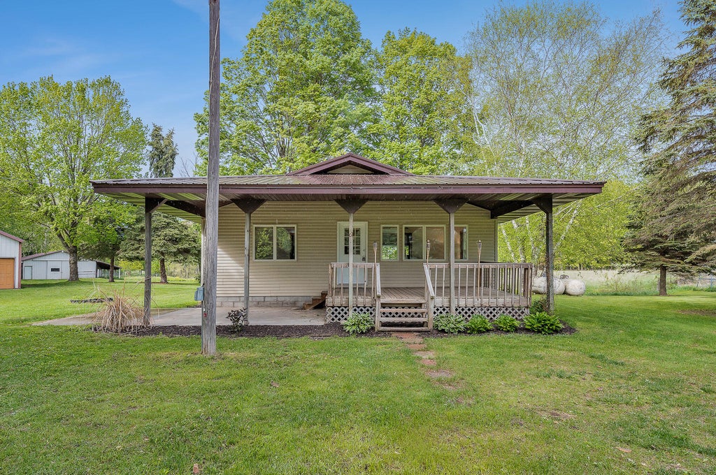 Tastefully updated 3 bed 3 full bath home overlooking a beautiful private pond with 32 acres and 2 substantial out buildings. Enjoy your morning coffee on the large covered porch overlooking the private pond. You will be delighted by the new carpet, fresh paint, and large master ensuite on the main level. In the basement there is a large rec room/third bedroom with direct access to the concrete patio in the rear of the home and an additional third full bathroom. With fresh landscaping, a large yard, and 17 acres of woods perfect for the avid deer hunter you will not be disappointed. Do not delay. Make it yours today. A member of the selling entity is a licensed real estate agent in the state of Michigan. The home is also listed on 9 acres. See MLS #: 25023484