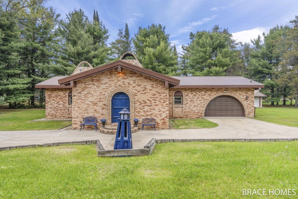 Surrounded by hundreds of miles of nearby DNR trails, this beautifully crafted solid brick home is a dream for outdoor and power-sports enthusiasts--and it's currently a thriving Airbnb! Tucked on just over 3 wooded acres, this custom build features 1' thick walls, cathedral ceilings, 3 cozy fireplaces, arched doorways, wood floors, built-in cabinetry, and stunning tiled showers. Tons of thoughtful updates inside! Outside, enjoy a 28x45 heated, insulated pull-through pole barn, a 16x16 screened-in gazebo with electric--perfect for entertaining--and a 10x13 storage shed. This is a unique, well-loved property you must see to believe. This home has been operating as a very successful AIRBNB! Can be sold with MLS #25026276. All furniture is negotiable. Call today!