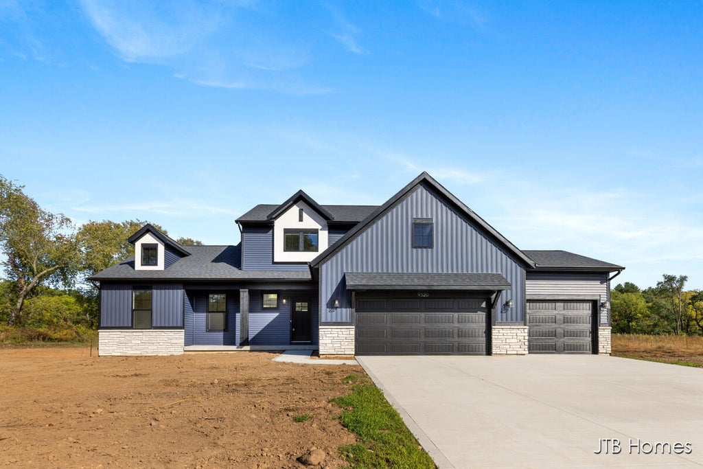 Welcome to the Sycamore plan by JTB Homes in the Caledonia School District! This stunning home sits on over 3 acres and offers over 2,500 sq. ft. of living space, a 3-stall garage, and 4 spacious bedrooms. The main-floor primary suite features cathedral ceilings, a walk-in closet, and ceramic tile shower. Enjoy evenings by the electric fireplace in the living room. The kitchen is a dream with a center island, vented range hood, and wood toe kick detail. A convenient main-floor laundry room and 1.5 baths complete the first level. Upstairs, you'll find 3 additional bedrooms and a full bath. Outside is a 16'x12' covered daylight deck- perfect for relaxing or entertaining. Don't miss your chance to see this home. Estimated completion is October. Buyer(s) eligible for 4.99% rate lock offered by seller. See documents for more details. Must be a full price offer.