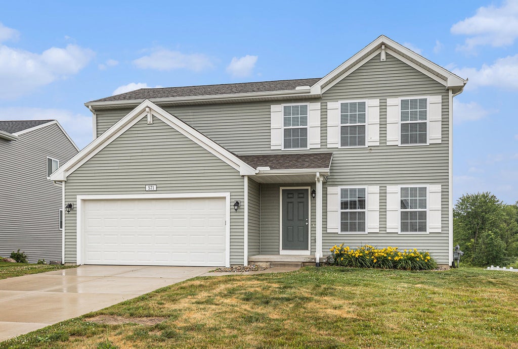 Traditional 2-story with 4 bedrooms, 2.5 baths and 1,822 sq ft. Home features large great room that flows into a dedicated dining nook with slider doors to a 10x10 deck with stairs to the rear yard - perfect for indoor/outdoor living & entertaining. Kitchen has white cabinets, a breakfast bar with pendant lighting above, and granite counters accented by subway tile backsplash. Full stainless steel appliance package includes range, micro hood, dishwasher & refrigerator. First floor powder bath and large laundry room are accessible via the mudroom that leads to the garage. All bedrooms on 2nd floor including spacious primary suite, with oversized WIC and private full bath plus 3 additional bedrooms and another full bath. Home is situated on a walkout site and has slider door to rear yardplus 2 daylight windows. Also includes 2 car attached garage, covered front porch entry, and garage door opener with 2 remotes & keypad.