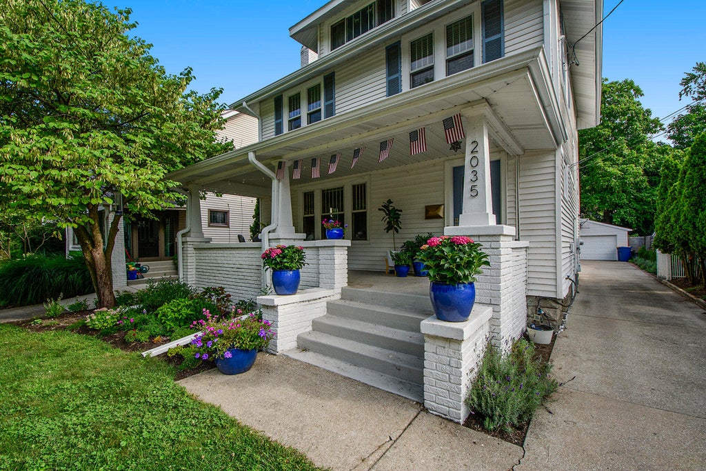 A wonderful home in the heart of East Grand Rapids! Just blocks from Gaslight Village, this 3-bedroom, 1 1/2-bath home combines the charm of gleaming original hardwood floors and coved ceilings with updates like newer windows and updated electrical. Enter from the gracious front porch to a nice flow from the cozy living room with a gas fireplace, through the sunny dining room, to the updated kitchen beyond. A half bath and a convenient mudroom round off the main floor. Upstairs are three good-sized bedrooms, a nicely updated full bathroom, and a great finished bonus space in the attic. Outside, the beautifully landscaped back yard has several different outdoor spaces to enjoy, along with a newer, detached 2-stall garage. Close to shopping, dining, schools, and Reeds Lake, this home is a great opportunity in an unbeatable location!