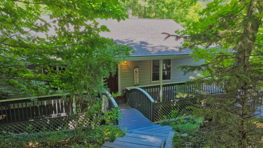 TORCH LAKE ACCESS! This custom-built, 3-bedroom, 3-bath home is a private oasis situated on a 1.37-acre lot near Torch Lake. The home features high-quality details including oak flooring, custom built-ins, and a stone fireplace in the cathedral-ceiling living room. An expansive, two-tier wraparound deck offers stunning views of the woods and Torch Lake. The property includes rock landscaping, flowerbeds, and an underground sprinkler system. For peace of mind, the home has AC, a natural gas backup generator, Gutter Helmet eaves, and a recently updated roof, furnace, and water heater. There is also a large attached 2.75-car garage and a newer, custom-built 26' x 38' detached garage with an impressive 10' x 38' attic space accessed by a ''power lift.'' A valuable bonus is the beach association membership, providing access to 165 feet of shared private beach and a park on Torch Lake, just a short walk away. This is a must-see property!The seller is a relative of the listing agent.