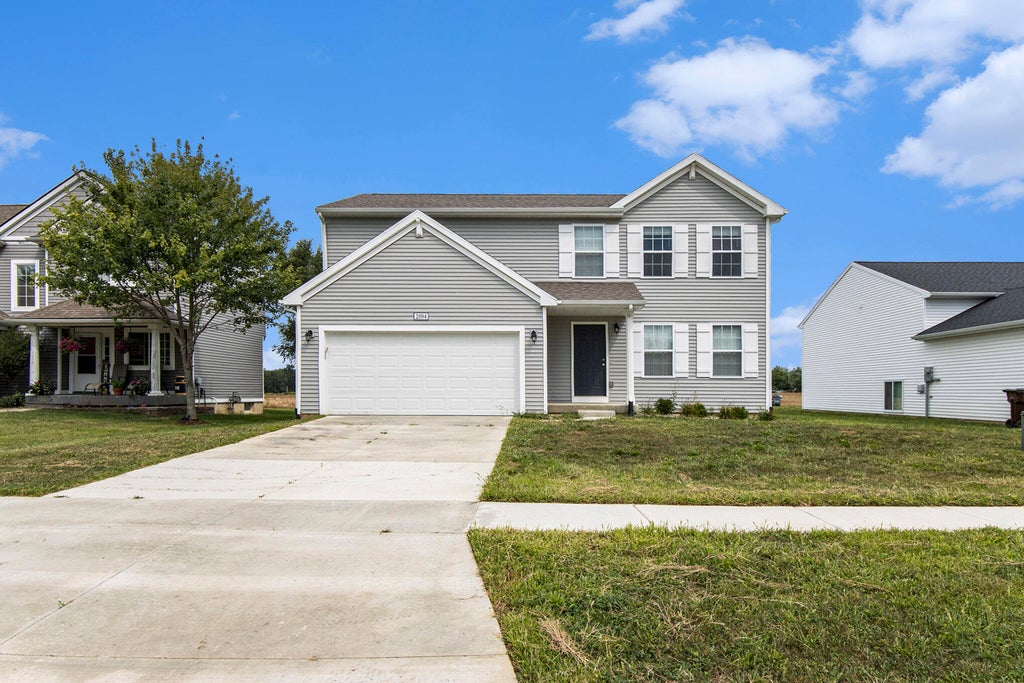 This charming 4-bedroom, 2.5-bath traditional two-story home offers modern living with a touch of classic style. Located in tranquil Countryside Farms near local parks, shopping centers, and excellent schools, this home features beautiful vinyl flooring throughout the first floor, offering easy maintenance and durability. The spacious kitchen boasts granite countertops, stylish subway tile backsplash, and white Craftsman-style cabinetry, complemented by stainless steel appliances. A breakfast bar with pendant lighting connects the kitchen to the great room, creating an ideal space for entertaining. The first floor also includes a convenient powder room and a laundry room with washer and dryer included. Upstairs, you'll find all four generously sized bedrooms, including a private primary suite with a large walk-in closet and en-suite bath. Enjoy outdoor living with a 10x10 concrete patio off the dining nook, perfect for relaxing or dining al fresco. The attached 2-stall garage comeswith two remote openers for added convenience. Situated just minutes from major highways, restaurants, shopping, and local attractions, this home offers both comfort and accessibility.