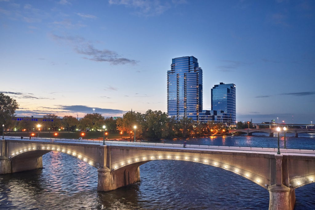 Experience the pinnacle of urban living in this exquisite penthouse condo located in the vibrant core of downtown Grand Rapids. Perfectly positioned just steps away from world-class dining, entertainment, and cultural landmarks, this home offers unparalleled access to everything the city has to offer.Enjoy breathtaking skyline views from your private terrace as you soak in the energy of the city below. Food enthusiasts will love being mere minutes from a diverse array of acclaimed restaurants, trendy cafes, and lively bars, making every night an opportunity to explore new flavors and experiences.Sports fans and concertgoers rejoice -- the brand-new state-of-the-art soccer stadium and amphitheater are right at your doorstep, bringing thrilling games and live performances right to your neighborhood. Whether it's game day excitement or a night under the stars with your favorite artists, you're always in the front row.At 2,600 square feet, this 3-bedroom, 2-bathroom condooffers a brilliant floor plan for entertaining. The great room boasts designer built-ins, textured wall panels, and floor-to-ceiling windows. The custom kitchen features a 14 foot island with quartz countertops, tigerwood cabinetry, and an expansive walk-in pantry. The primary suite offers panoramic views and a newly renovated en-suite with walk-in shower. Two garage parking spaces and one storage unit are included with purchase. Residents of River House Condos enjoy a sleek entry lobby, lounge, indoor pool, fitness center, and 24/7 concierge.