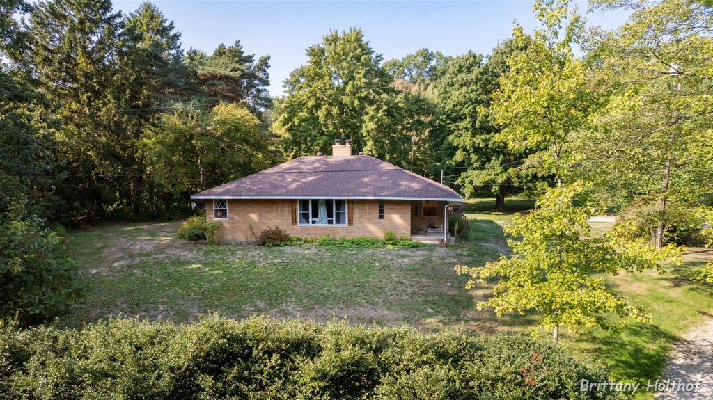 Just 4 minutes away from the beautiful Lake Michigan beach at Kirk Park, you will find this charming mid-century brick ranch, tucked away on over 1.5 wooded acres. This 3-bedroom, 1-bath home offers a peaceful retreat surrounded by mature trees and natural beauty. Inside, the thoughtful layout includes real hardwood floors and a cozy wood-burning fireplace providing a warm, and inviting atmosphere with room to expand in the unfinished lower level. Outdoors, you'll enjoy the quiet seclusion of the property, perfect for gardening, relaxing, or simply just enjoying nature. This home offers the perfect balance of privacy and convenience, with beaches, parks, and local amenities just around the corner.