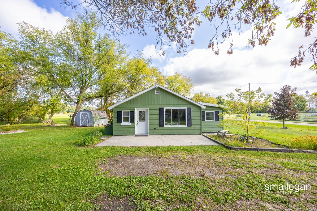 Seller is offering 3% in concessions. Charming 3-bedroom, 1-bath ranch just 5 minutes from Sand Lake, set on a spacious lot with mature trees and a storage shed. Inside, enjoy an open layout with updated flooring, a bright living area, and large windows for natural light. The kitchen features ample cabinetry, tile backsplash, and included appliances--fridge, range, microwave, washer, and dryer. Main-floor laundry offers custom cabinetry and a wood countertop, while the updated full bath provides fresh finishes and storage. Major updates include roof and well (2020) and water heater (2018), giving peace of mind. Outside, relax or entertain on the patio with plenty of yard space to enjoy. Convenient location close to town yet private and quiet. All offers reviewed on 9/30 at 4pm.