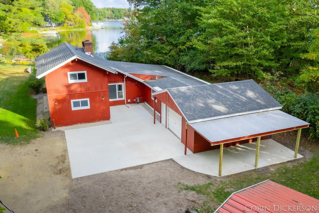 Stunning home available on beautiful Brandywine Lake! This home would make the perfect getaway or year round home. You will love all the updates in this home - newer roof, vinyl windows, updated kitchen and bath, new septic tank, new furnace, new driveway and more! As you drive p to your private retreat, you will notice extra parking space under one of two carports, or parking/storage in the attached garage! A private courtyard style entrance leads into a gorgeous great room with soaring ceiling and cozy fireplace. The kitchen has a slider that leads out to your private waterfrontage. There are two generous main floor bedrooms, a full bath, and a huge flex space off the garage for extra living space/storage/office/crafts. But wait - there's more. Upstairs are two additional bedrooms with vaulted ceilings and a laundry area. Whether this would be your getaway or full-time home, it is sure to please. No short-term rental restrictions! Schedule your showing before it's gone