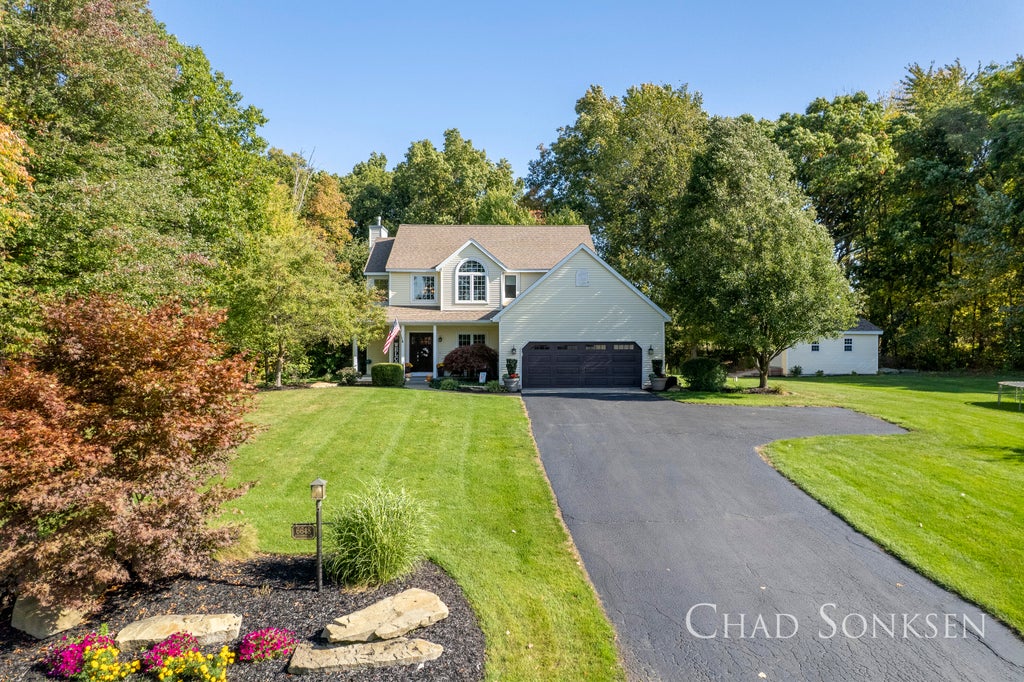 Welcome to 6648 Summerhill Dr. Located in Award-winning Caledonia Schools, and tucked away on a private 1.85 acres at the end of a cul-de-sac, this 4 bd, 2.5 ba traditional home is sure to impress. Enter into a two-story foyer with engineered wood flooring throughout the main level. French doors leads you into the front office/dining area, with custom built-in cabinetry. The open concept floor plan gives you beautiful views of the private backyard through large living room windows and slider off the kitchen. The focal point is a stacked stone gas fireplace from floor to 9' ceiling, with an authentic, custom barn beam. The kitchen offers endless cabinet space, and includes center island, quartz countertops, tiled backsplash and stainless steel appliances. Beautiful custom mudroom with multiple lockers and cubbies off kitchen/garage. Laundry and half bath complete the main level.The open, split staircase takes you to the second level, where you'll find 3 large bedrooms, 2 full baths, and a loft area. The primary bedroom features a walk-in closet and en suite bath, equipped with free-standing soaker tub, large tiled shower, sleek dual vanity, LED backlit mirror and natural LVP flooring. Second bedroom offers walk-in closet and skylight nook. Third bedroom has built-in desk and storage bench. All three bedrooms have ceiling fans. Second full bath has been updated including newer vanity & countertop, faucet, mirror, toilet and LVP flooring. Loft area overlooks entry and front of home with large windows for tons of natural lighting. Beautiful, new LVP flooring runs up the staircase and throughout entire second level.