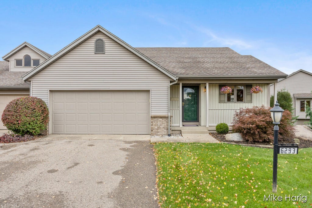 Well maintained 3 bedroom 2 & 1/2 bath ranch condo in Georgetown township! Open concept kitchen, dining and living room open to a four-season room that brings in abundant natural light, access to the 16 x 10 deck and relaxing pond views. Main level living at its best with master bedroom, walk in closet and bath, 1/2 bath for guests, laundry and den. Basement has 2 more bedrooms, full bath, and a large storage area that could be used for a workout room or workshop. The lower level also includes large family room with wet bar and walkout to a shaded concrete patio to take in more views of the pond and greenspace. If that's not enough, the meticulous attached garage has hot and cold water and in 2024 was repainted, overhead door replaced, and an epoxy floor installed. You can't beat the location or the pride of ownership that is apparent throughout this condo. Call today for your private showing.