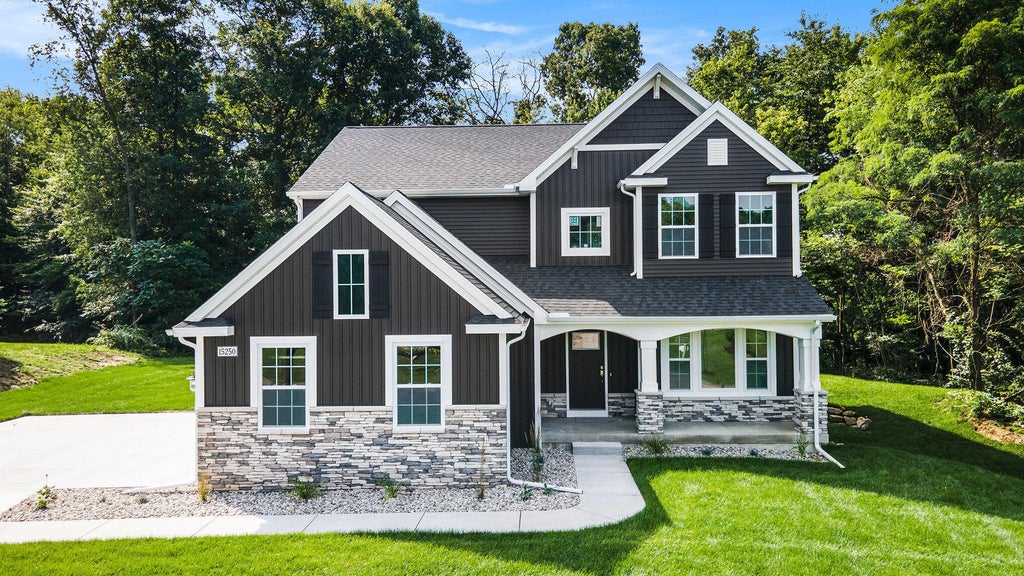 Gull Lake Schools - New construction NEW PRICE - Discover this stunning new home in The Woods at Stonehedge, offering a perfect retreat surrounded by nature. 2,700 sq. ft. of thoughtfully designed living space. Step into a two-story foyer that leads to a private study, and then into the expansive great room with fireplace and sliders to a patio and generous dining area. The open-concept kitchen is a showstopper, featuring white cabinetry, a contrasting center island with pendant lighting, quartz countertops, a tile backsplash, and select stainless steel appliances. including a mudroom with a built-in bench and a walk-in utility closet for added storage. Upstairs, the luxurious primary suite offers a spa-like bath, a walk-in closet, and plenty of room to relax. 3 additional bedrooms and laundry room, 3 car garage