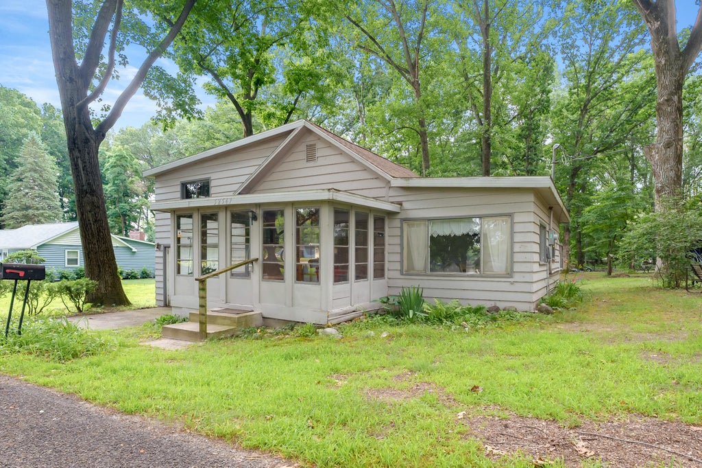 This cozy Michigan cottage is the kind of place that feels like summer camp! Tucked under a brand-new roof, the rustic interior offers 3 bedrooms, cozy living room with sliders out to huge back yard, and 3-season front porch that's perfect for morning coffee or evening card games. Enjoy your newly built 26x32 steel pole barn with 8.5' doors on 2 sides, concrete floor, underground electric and water. Full RV hook-up ready for you--electric, water, and septic. Set in a quiet, laid-back neighborhood with no HOA and No rental restrictions. Just fresh air, tall trees, and room to breathe on a generous .43 acres.Septic system was recently pumped and inspected by the health department with full approval and water testing was clear.