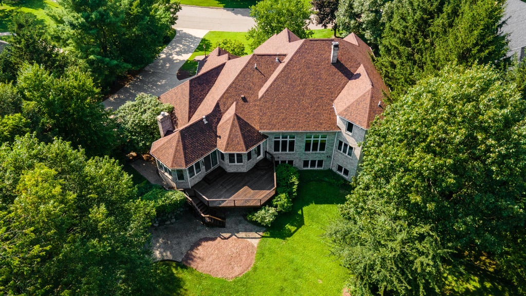 Immaculate Glas built home in Whispering Meadows development. All brick exterior construction on a park like 1.1 acre private lot. Low traffic cul de sac road. Enter into the arched two story foyer with curved cherry staircase. Vaulted family room with fireplace, Brazilian Cherry flooring, custom built-ins, pull out columns, and 7.1 surround sound. Hunter Douglas blinds throughout. Main floor library for the at home professional with gas fireplace and Cherry shelving. Formal dining room, architectural columns, leaded glass transom window. Solid maple kitchen, double oven, heated flooring. Gorgeous sunroom with treyed ceiling, recessed dimmable lighting, and wood burning fireplace. Elevated Tigerwood deck overlooks the fenced back yard. Main floor primary suite with french door entry,security alarm console, master flood light switch for added security. New carpet and large walk-in closet. Primary bath has heated flooring, remote control window shade, and Glass shower with 7 heads. Three bedrooms and two full baths upstairs. Vaulted Jack and Jill bedrooms with large walk-in closets. Third bedroom with private bath. Daylight lower level is light and bright. Additional family room with new carpet, custom lighting and wired for audio. Lower level guest suite, full bath. Spotless utility rooms with updated mechanicals. Code locked security/safe room. Heated 3 car garage is wired for a generator, staircase to the basement. 2020 roof with 30 year high impact shingles. Pride of ownership really shows with this home. Please see attached docs for more details, updates and custom features.