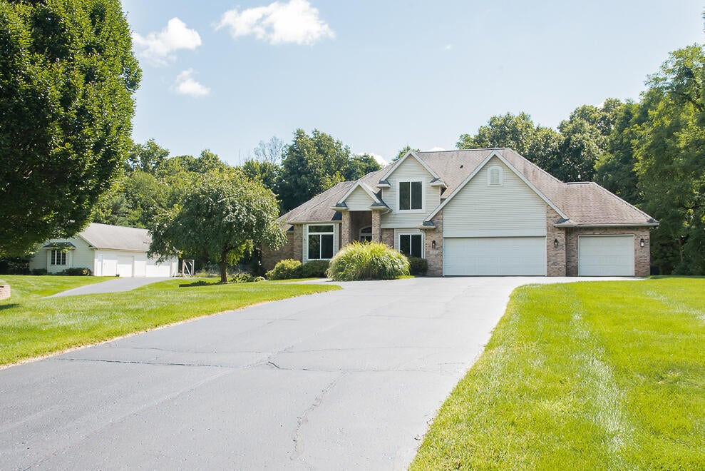 This exceptional property has it all! Situated on 2 acres, w/ 5 bedrooms and 3.5 baths, main floor primary ensuite, Mattawan Schools, 3 car attached garage AND for the car enthusiasts or hobbyist, an additional 3-4 detached (45x24)garage w/ electric, heat, and water. (brand new water heater)!Located in the desirable Whispering Pines Subdivision, and a walk to the 6th st. pickleball courts, is a lovely setting w/ mature trees and convenience to highway, restaurants, splash park and all of the other features the Texas corners area has to offer. Interior features of this beautiful home with wood floors on much of the main floor include the open foyer looking though to the grand wall of windows in the 2 story family room w/ cherry built in cabinetry, and gas FP w/ stacked stone. Open to the spacious kitchen w/ newer stainless appliances, granite, and a large eating area w plenty of light. Formal DR w/ tray ceiling, den w/ 10ft. ceiling, built in bookcases and granite counter top.You will love the convenience of the main floor primary, w/ new custom closet built ins, bidet, newer marble counter tops, and separate tub and shower. Upper level consists of 3 good size bedrooms and the large family bath. You will love the lower level which also has plenty of light w/ daylight windows. The large 5th bedroom, full bath, family room, and recently finished Bar area/ kitchenette w/ beverage refrig., dishwasher, quartz countertop, and beautiful cabinetry. LV flooring throughout most of lower level, and a Gym w gym mat flooring. Not to be missed is the cedar closet, and still plenty of storage. There are so many recent updates to this home include: All new Pella windows (except garages), Solar panels on backside of roof, custom closet built ins-Primary ensuite, New water heater, new HVAC R/O system, New Refrigerator and the large private backyard w/ patio, raised garden beds, and fenced dog run off of garage.