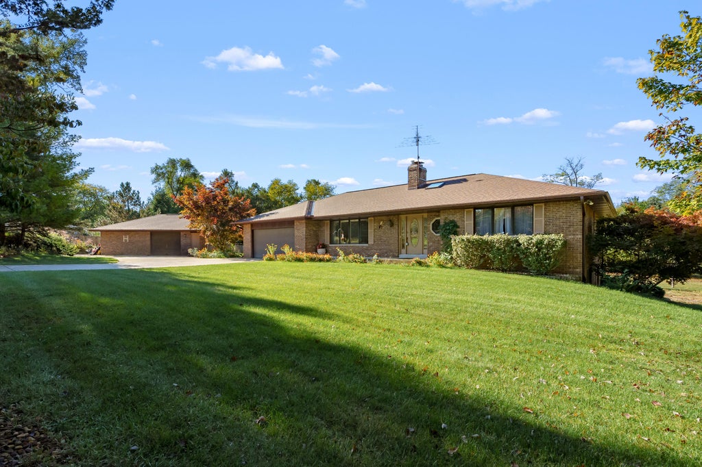 Awesome all brick walkout ranch on 2.65 acres.The original owner is offering this home with over 3,300 sq. ft of finished living area. This property also includes a 28x32 extra brick 2 car garage with a nice work shop and several other outbuildings. The main floor features 2 very large bedrooms a large living room with gas fireplace and a main floor family room. The kitchen features newer granite countertops, quality cabinets and a huge informal dining area that has sliders leading to the expansive deck which has a retractable awning. The main floor laundry also includes a 2nd main floor full bath. The walkout level features a 3rd huge bedroom and 3rd full bath and a large recreation room with wet bar and nice storage/mechanical room as well. The 2.65 acres gives lots of privacy and the whole house 20kw generator is a great feature. The roof on the house and extra garage were re shingled in the last 4-5 years. All appliances on property will stay and quick possession is availabl