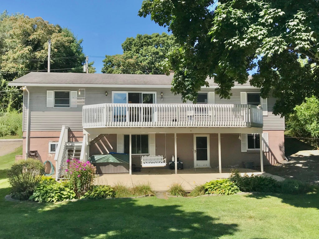 Grey Lake-All sports. Must see this year round 4 BRS 1.5 bath home on Grey Lake. Main floor offers wood floors through out with an open concept that has a large living rm with fireplace, spacious dining rm with slider door to the lakeside deck with beautiful lake views with steps to lower rear patio. Kitchen offers lots of cupboards, pantry. 3 bedrooms, 2 with having lake views. full bath in the hallway. Finished lower level has second kitchen, 1/2 bath, storage rm, Large family rm with gas fireplace with door to rear patio, 4th bedroom or office, workshop with bench, lots of storage. 200 amp service with generator hookup. hardwired for security camera's, living rm wall hangings stay. Frontier internet. Great fishing with all watersports allowed very quiet lake.. Stay Dry water proof system and much more. Additional parking on the driveway on north side of the house.