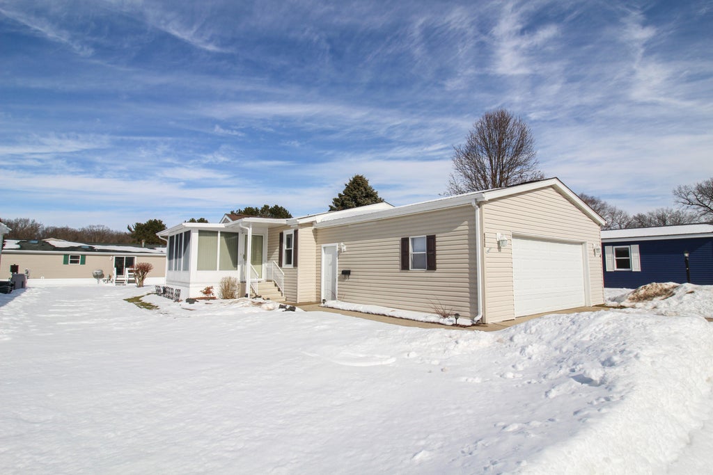 This very clean, affordable 3-bedroom, 2-bath manufactured home in Kalamazoo Township in a 55+ community offers 1,350 finished square feet. There are newer windows, a newer roof, and newer water heater. This home features a functional floor plan with a spacious living area, a generous kitchen and dining space, and a primary suite with a private full bath. Two additional bedrooms and a second full bath provide flexibility for guests, a home office, or family needs. There is also a beautiful 3-season room! Includes generator! Comes with washer and dryer! Plenty of closets.Buyer will need to complete the resident application & approval with Royal Estates. https://www.yescommunities.com/community/Royal-Estates. Also, contact the listing agent for mobile home financing options.Enjoy the convenience of public water and sewer, low-maintenance living, and a 2-car garage for added storage and parking.