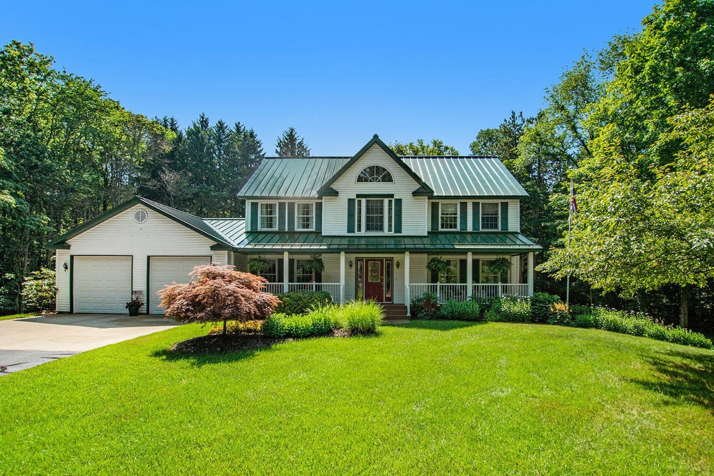 Impeccably maintained traditional home on 11+ wooded acres just minutes from South Haven. A paved, hidden drive leads to this private haven with ample parking. Nearly 3,500 sqGǻft of finished space offers 4 beds, 3 baths, hickory hardwood floors, and a cozy family room with wood-burning fireplace. The chef's kitchen features a granite island and Bosch, Electrolux, and Whirlpool appliances. Modern comforts include a 2019 Heil furnace, 2022 condenser, high-speed internet, and surround-sound basement. Enjoy the spacious porch, back deck w/ GreenShield warranty, durable metal roof, and extra-deep attached garage. Pride of ownership throughout this rare, serene retreat. Want more land? Separate parent listing for the house on 22+ acres.