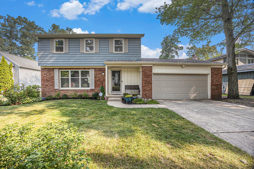 This home is a beautifully maintained two-story home featuring an open-concept living space that flows into a spacious living room with large picture windows. There is new flooring throughout the home. The upstairs includes 4 generous-sized bedrooms with hardwood floors. The ample kitchen has lots of storage and cupboard space, a large island, and stainless appliances. The basement provides an extra space for a man cave or play area in addition to storage. The outside features a large backyard deck with room for entertaining. The yard is nicely landscaped with large shade trees in the front and a fenced play area in the back. Home also has a big attached two-stall garage that will fit large vehicles. .